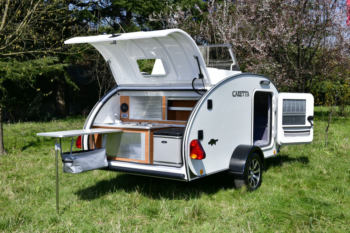 Како никогаш досега, кампувањето во природа не било толку лесно и забавно благодарение на извонредната Caretta. Живејте авантуристички – едноставно закачете ја и сте спремни. Кога ке пристигнете на вашата дестинација, нивната лесна но сепак робусна конструкција ви овозможува лесно да го наместите во посакуваната позиција без никаква мака и пот. Едноставно пуштете го третото тркало, откачете ја приколката, истуркајте ја на идеалната положба, нивелирајте ја и сте подготвени за вашата незаборавна авантура која ви ја овозможуваат овие прекрасни компактни приколки.